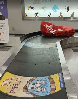 和歌山 南紀白浜空港 ターンテーブルで横倒しで来る |
