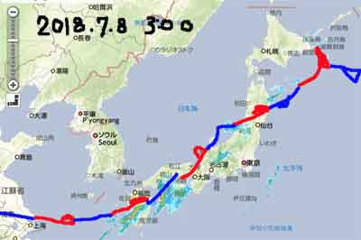 左手中指関節の剥離骨折で手術の為に入院していました。退院してみたら,西日本,九州,四国の大災害。梅仕事でメールくれた人達,無事だろうか,親戚は大丈夫か,友達はどうしているか,,,そしてテレビで見る方々,行方不明の方々,,これは大変なことに,,,と心が傷みます。自分は,手術が失敗し,指は元には戻らない,将来的には人工関節? そして切開した皮膚もくっつかないかも?なんてのは不幸のうちに入らないと思いました。避難している人々にも怪我してる方も多いだろうし,痛くて辛い人も居る。にっくき梅雨前線は今日も居座るようです。今朝3時の予報と発表された前線を合わせてみました。やはり今日も厳しい状況なのが見えます。早めの避難でコレ以上被害者が出ない事を祈ります。(7月8日)