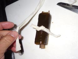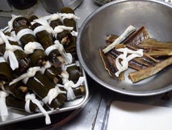 - くるくると巻いて,カンピョウで縛る。1本,2本。