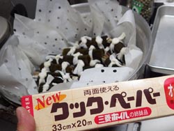 焦げ防止に必須,十字に2枚 |