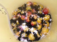 2014年6月28日(土) 漬け込み今年は揉んでおいた赤紫蘇を分量の半分は一緒に漬け込むことにしたので,樽一つに入らず,最初だけ2つに分けて漬けてから本格的に赤紫蘇を入れる時に一つの容器にしました。赤紫蘇を最初から入れたのは色ムラ回避の為でしたが,漬ける時に梅酢がないので色をよく揉みだせず,色ムラ回避には効果ありませんでした。1年前の梅酢を残しておけばいいんだけど,それもな〜です。今年は2年前より良い時期のためか, 傷梅が多かったです。一番忙しい時期なので,見逃しもあるのかも。ま,自然の恵みなので揃えるのは大変です。 | ||