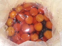 | ビニール漬けの〜1.2kg分 | 8kg+1.2kgをまとめる | 赤紫蘇を敷き,梅酢を戻す |