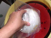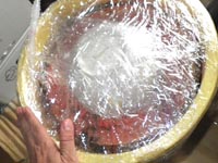 | 蓋を押して状態確認。 | スペーサーは高さが大事。 | ラップ+蓋して土用待ち |