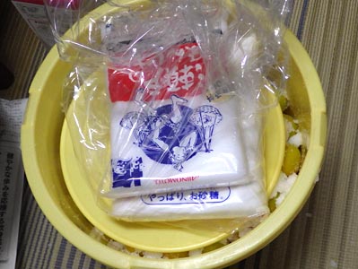 | 潰れちゃっているのが4個+仕分けして漬ける3個=合計7個は,袋漬けです。 | |
