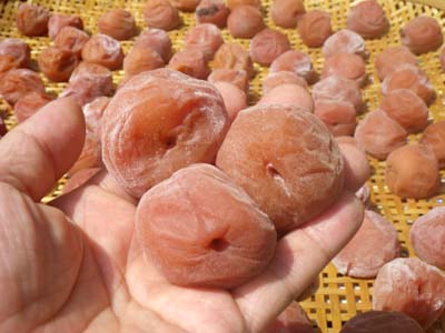 この状態の梅じゃ,冷凍したら柔らかくなりすぎて干せないね。